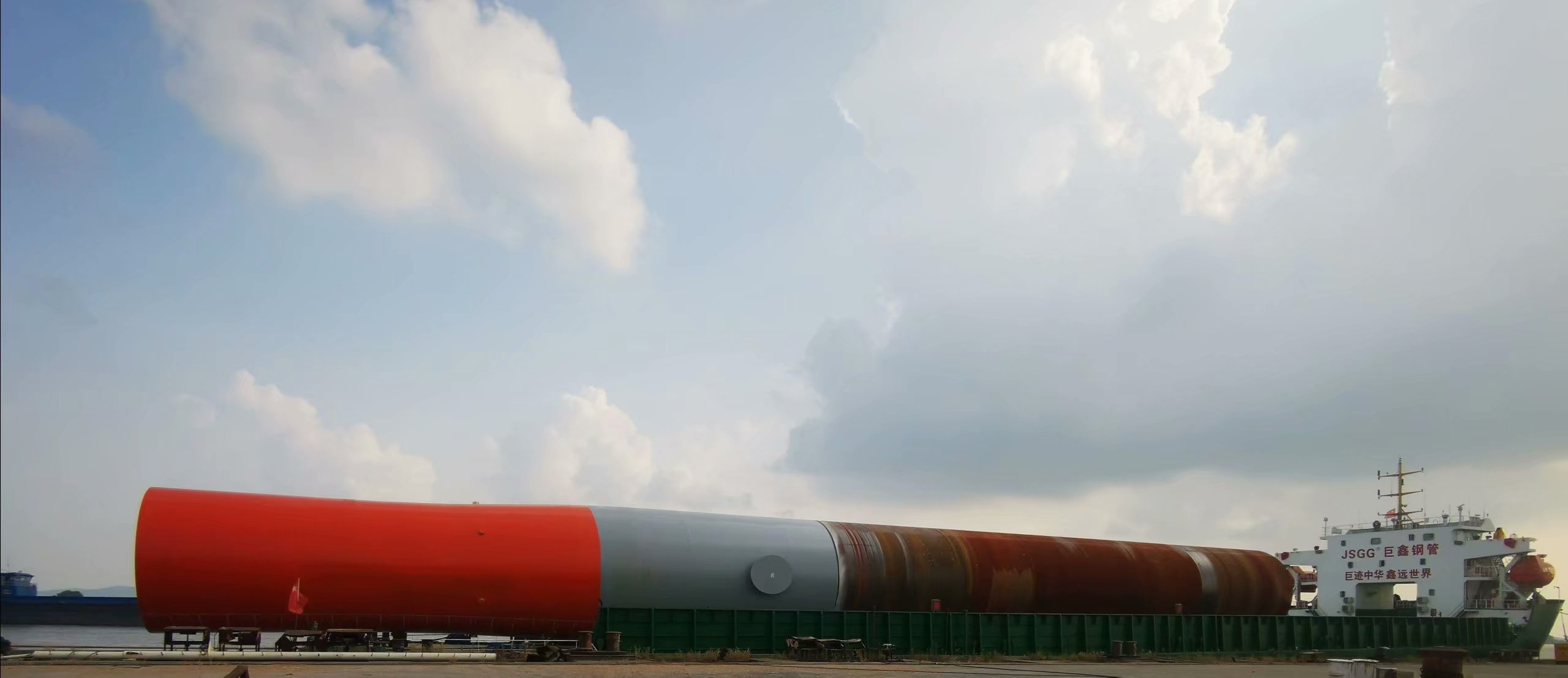 由巨鑫鋼管加工制造的“巨無霸”海上風(fēng)電鋼管樁,是中國華能集團(tuán)嘉興2號海上風(fēng)電項目上, 施工單位:中鐵大橋局集團(tuán)第五工程有限公司,鋼管樁規(guī)格型號:Φ6500~7500×65~85×77000,單重:1200噸