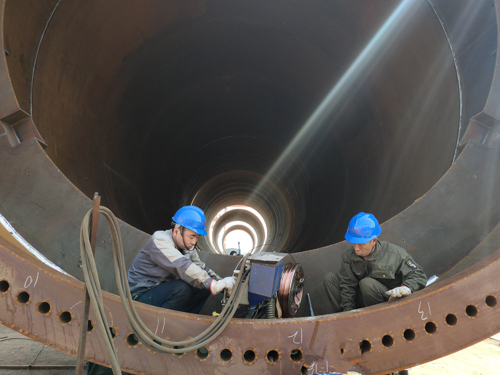 中鐵建港航局莊河項(xiàng)目海上風(fēng)電鋼管樁焊接中
