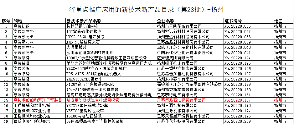 日前,江蘇省新技術(shù)新產(chǎn)品推廣應(yīng)用工作聯(lián)席會議辦公室公布了第二十八批省重點(diǎn)推廣應(yīng)用的新技術(shù)新產(chǎn)品簡稱“兩新”)目錄,巨鑫鋼管“疏浚用階梯式法蘭排泥直鋼管”入選江蘇省重點(diǎn)推廣應(yīng)用的新技術(shù)新產(chǎn)品。
