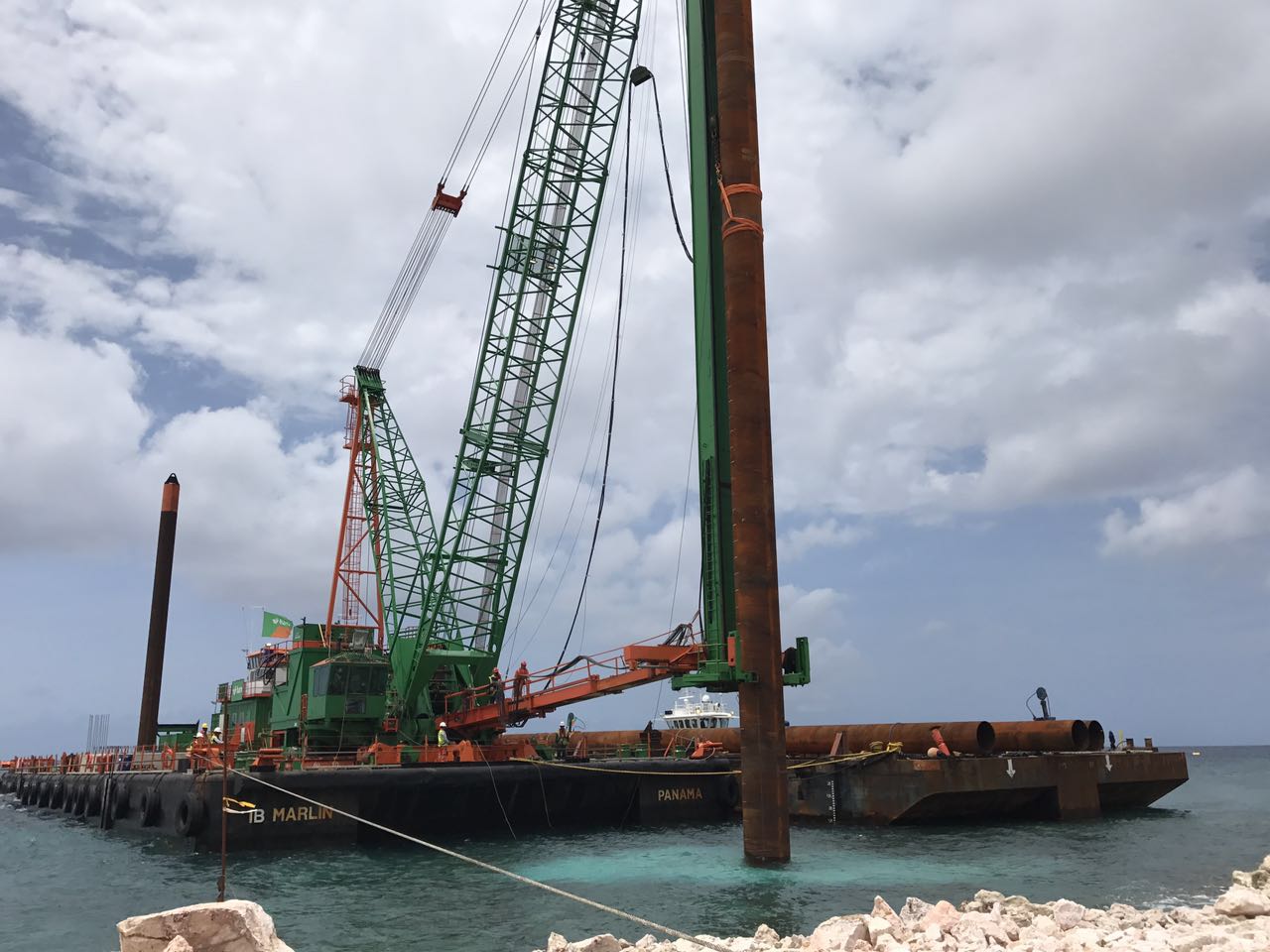 該合同鋼管樁沒有吊耳,只在樁頂部位鉆了兩個直徑100mm的孔,吊裝時全部采用吊帶。這種結(jié)構(gòu)既環(huán)保,又確保了鋼管樁防腐層質(zhì)量不受破壞。