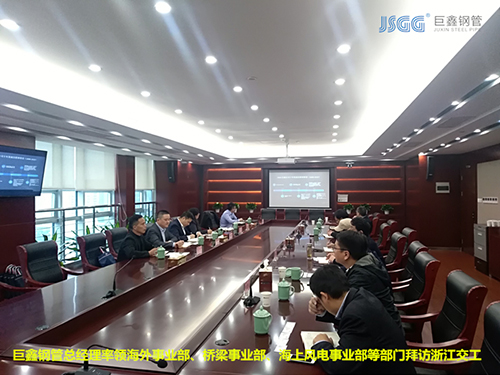 為了感謝浙江交工長期以來對巨鑫鋼管的幫助和支持,同時也為能進一步提高巨鑫鋼管的服務質量。2019年11月18日,巨鑫鋼管總經理李海軍率橋梁碼頭事業(yè)部、高鐵地鐵事業(yè)部、海上風電事業(yè)部、城市管網事業(yè)部、海外事業(yè)部五大部門經理集體拜訪了浙江交工集團。