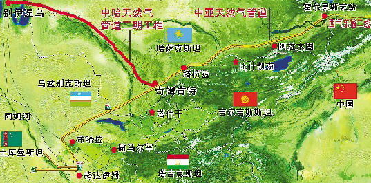 中亞天然氣管道是我國首條進口天然氣管道,也是當前世界上最長的天然氣管道。該線起始于土庫曼斯坦-烏茲別克斯坦邊境,經烏茲別克斯坦、哈薩克斯坦到達中國霍爾果斯,與中國境內的西氣東輸二線相連,通過西氣東輸二線運至上海、廣州以及其他十多個省市和地區(qū)。