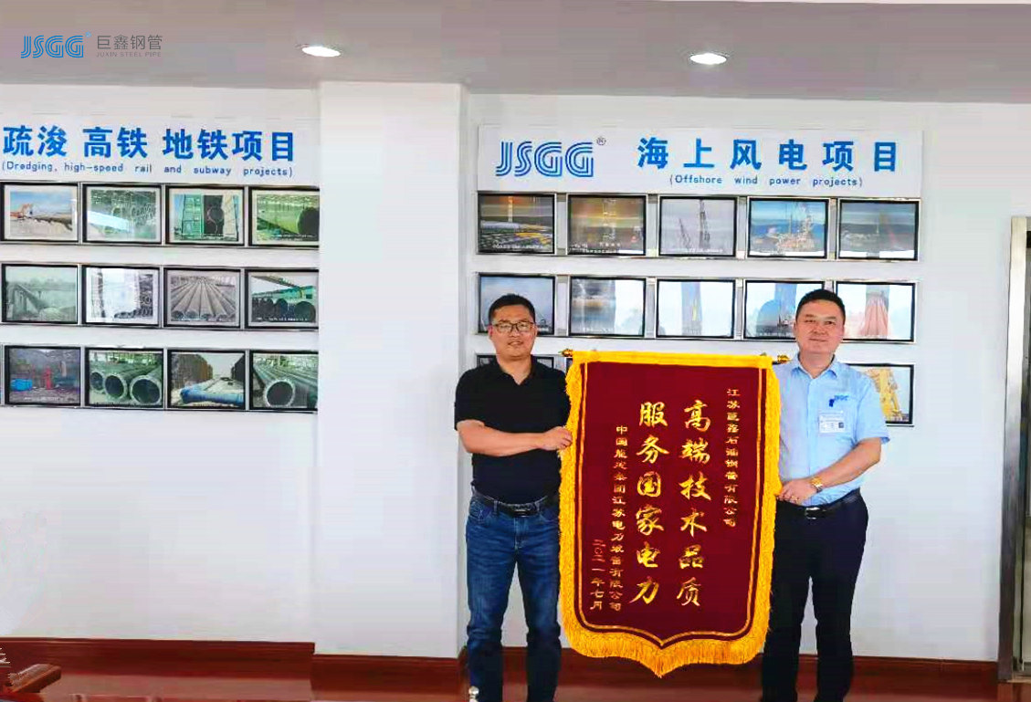 7月13日,在巨鑫鋼管會議室,中國能建集團江蘇電力裝備有限公司王文斌主任給江蘇巨鑫鋼管公司總經(jīng)理李海軍贈送了“高端技術(shù)品質(zhì) 服務(wù)國家電力”的錦旗,這是巨鑫鋼管首次收到國家電力行業(yè)的錦旗。項目執(zhí)行中,巨鑫鋼管國網(wǎng)特高壓事業(yè)部俞美蓉部長熱情周到認(rèn)真的服務(wù),受到了王文斌主任的夸獎。